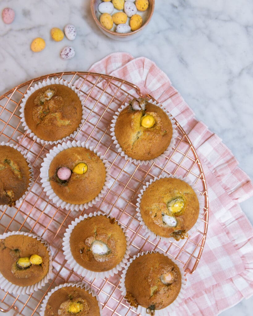 Moist banana muffins bursting with colourful mini eggs, perfect for Easter and beginner bakers.