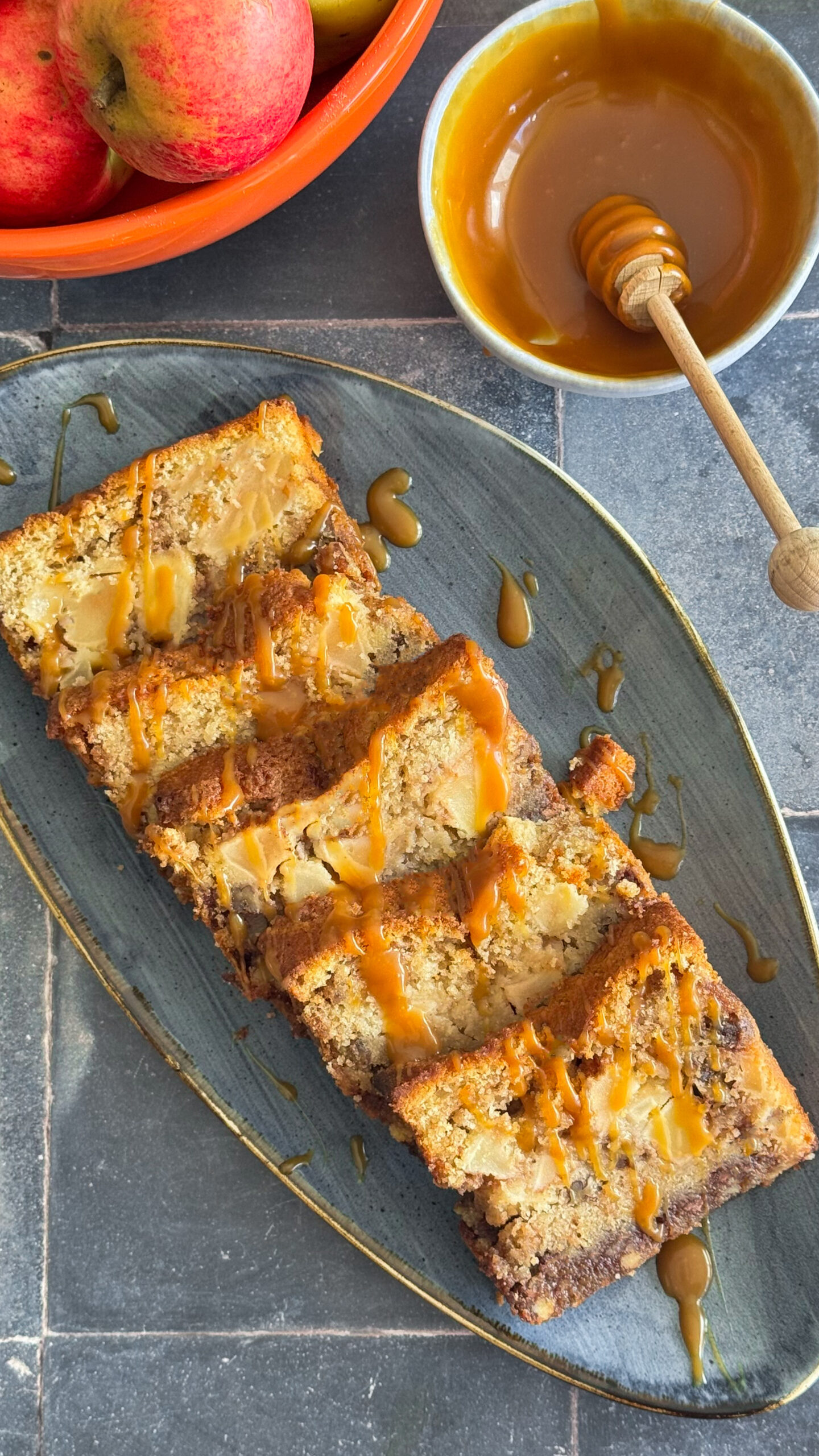 A lovely twist on classic apple cinnamon bread, this recipe features chunks of fresh apples, delicious chocolate chips, toasted pecans, and a gorgeous caramel finish. Yield: 1 loaf (6-8 slices)Prep Time: 20 minutesBake Time: 45-55 minutes Ingredients For the Cinnamon Sugar Mixture: For the Bread: For the Topping: Method Prep: Make the Bread: Assemble: Bake: